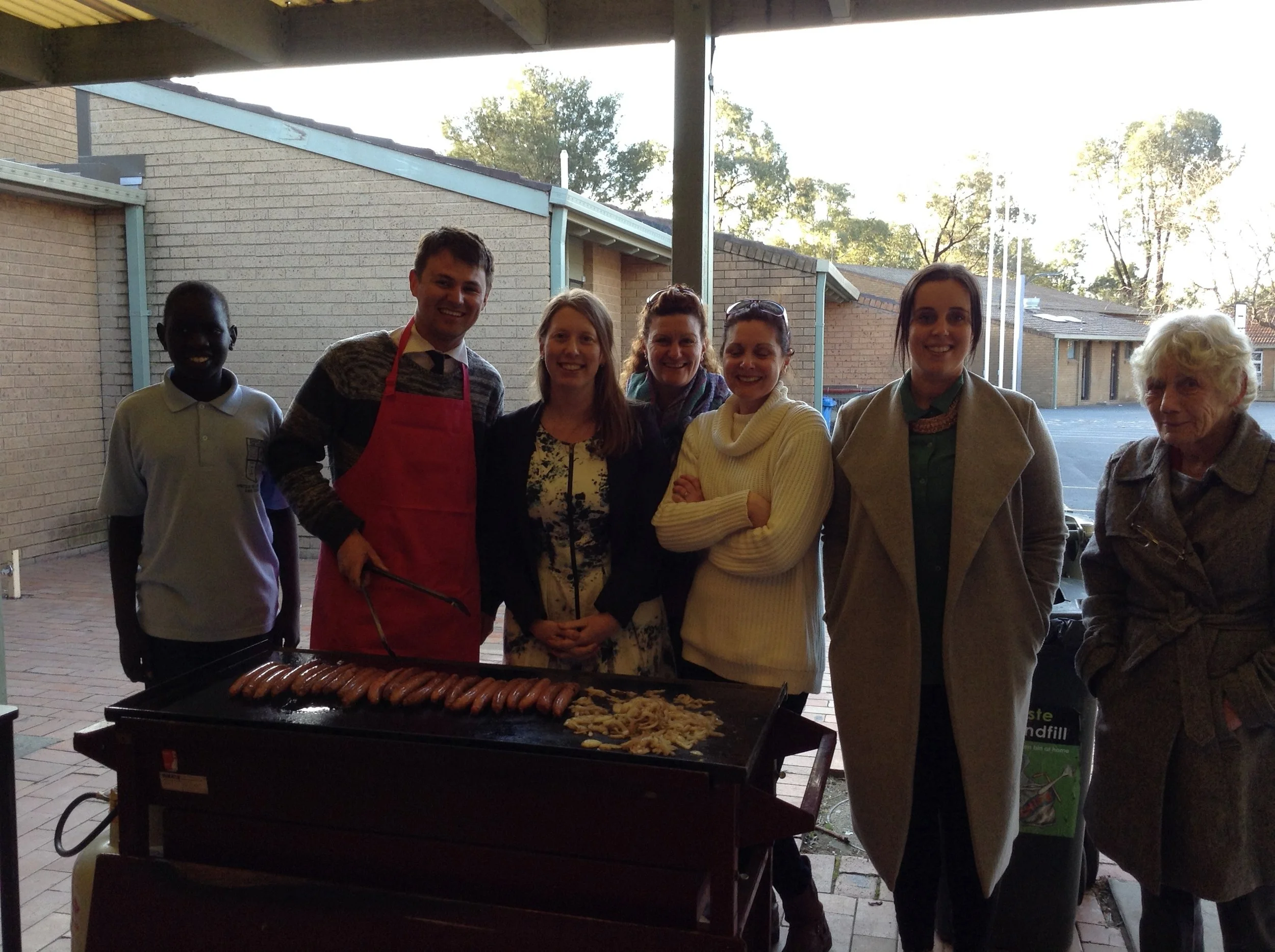 This project would not have been possible without the faithful support of our volunteers and to celebrate we had a sausage sizzle in true Aussie fashion to celebrate the end of term. The sun could have provided more warmth, however the sausages and sauce provided sustenance and a warm sense of community that has developed over the last 6 weeks of this project. Our thanks go to Pat, Bek, Kristy, Leilah, Jack, Anthony, Angela and Matthew for their unwavering support and to a very special boy called Ekol who cheerfully helped and learnt alongside us.